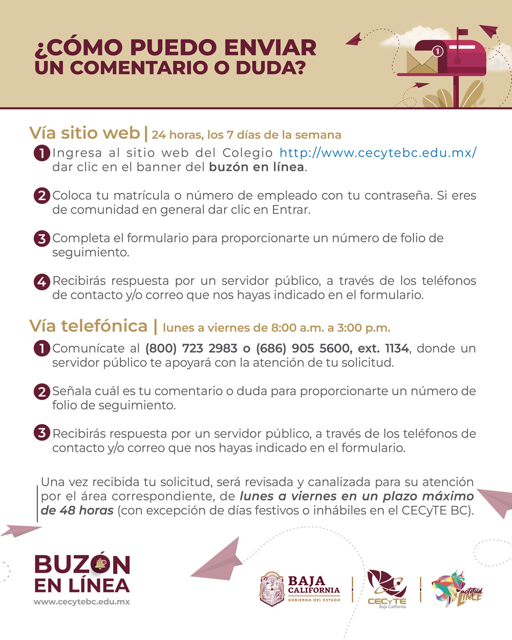 Medio por el cual el usuario puede enviar Comentarios, dudas, quejas y sugerencias a CECyTE BC.