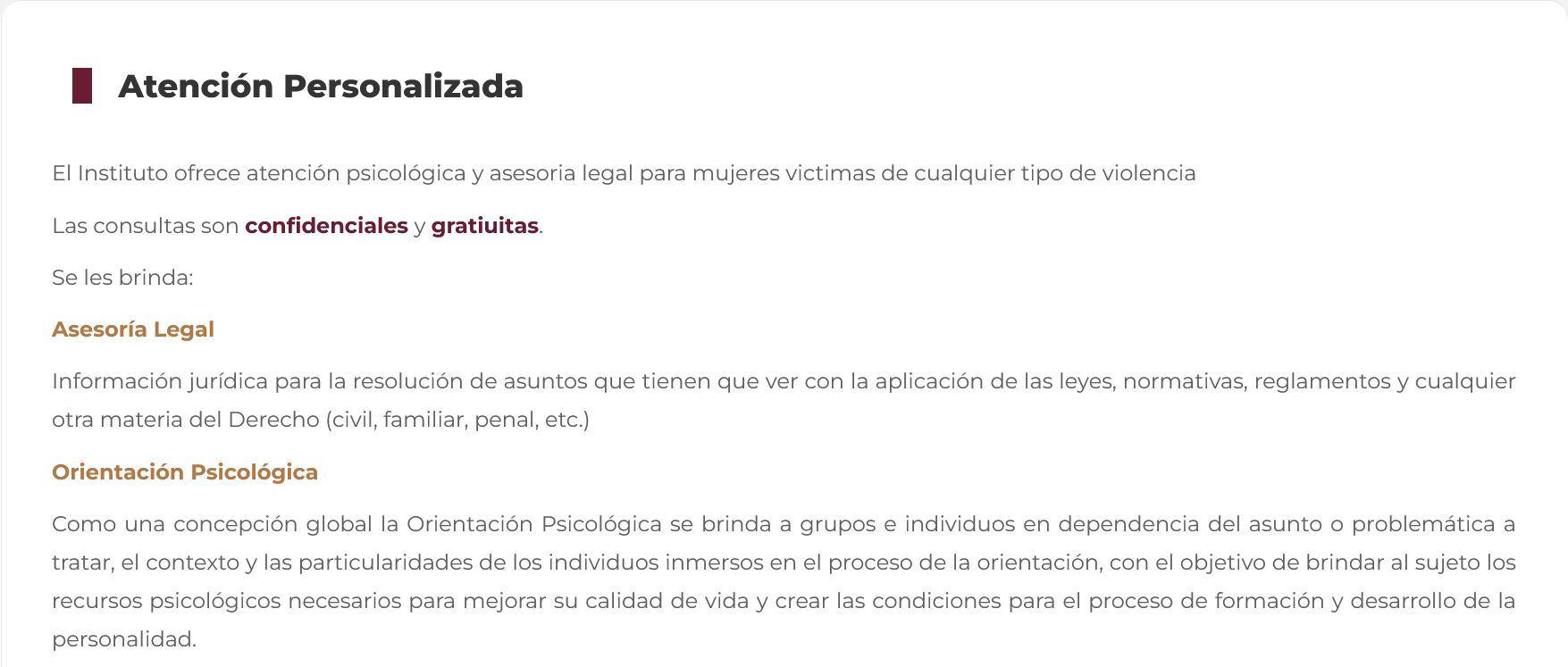 QUE SE OBTIENE: Asesoría legal y psicológica gratuita