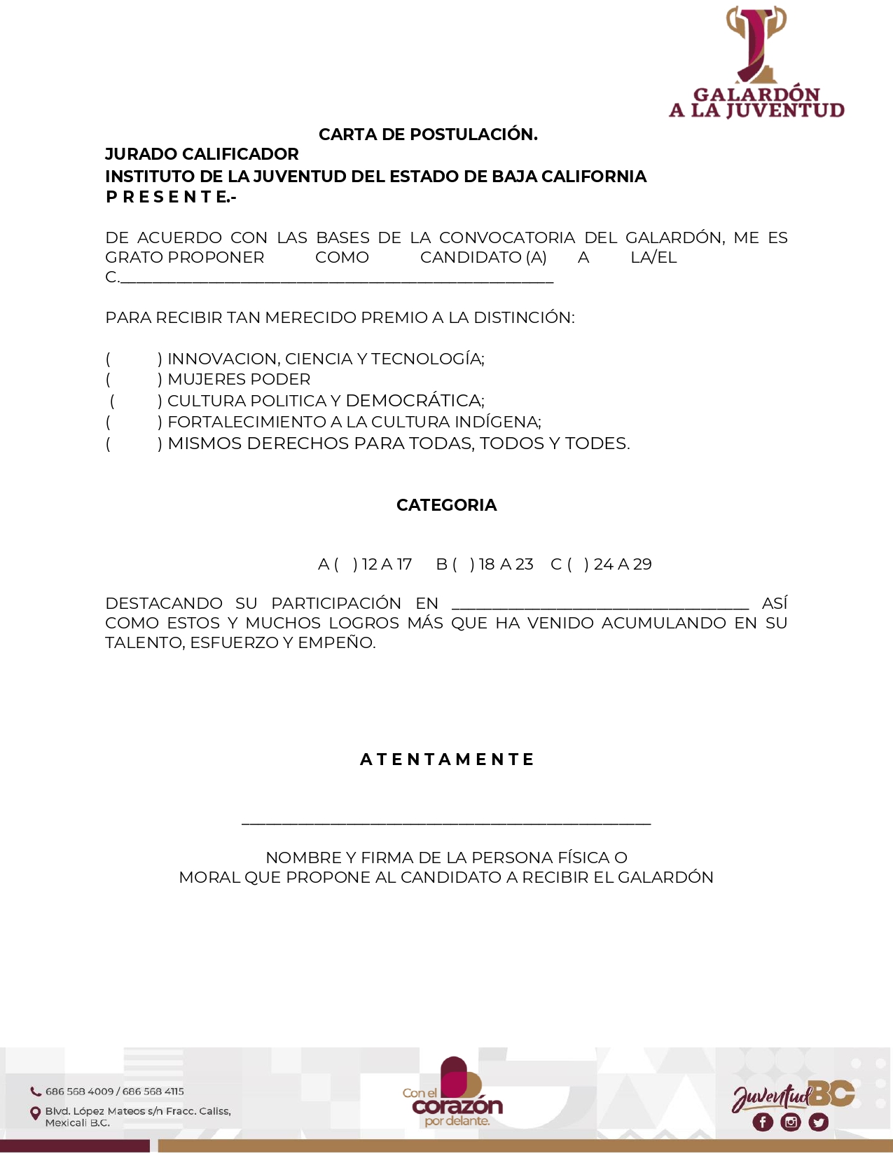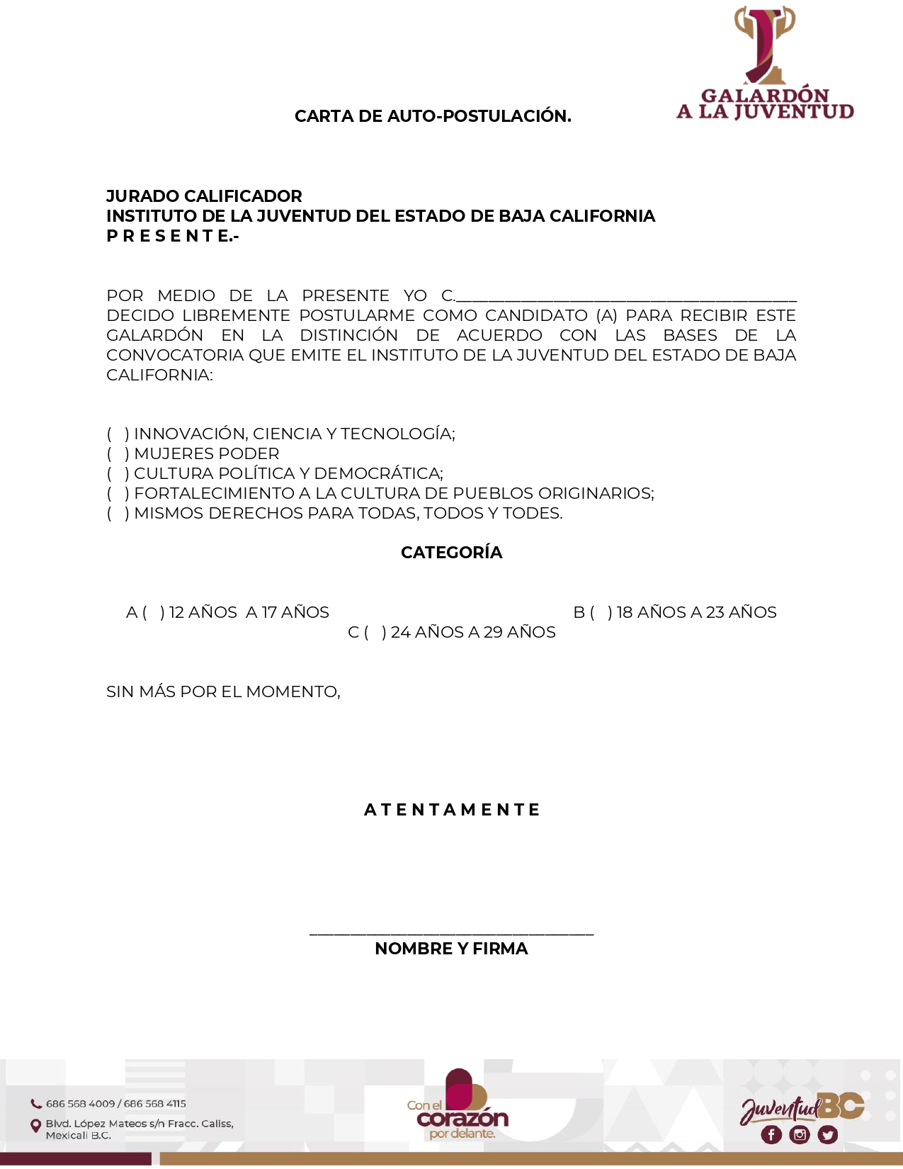 - Original carta de autopostulacion para menores de edad Descargar